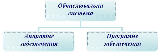 | Обчислювальна система – це сукупність програмної та апаратних засобів, що забезпечують автоматизацію збору, накопичення, опрацювання, систематизація, зберігання, подання, передачі інформації. |